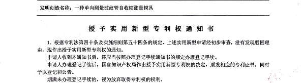 我司获得水泥基材料波纹管法测定仪相关专利授权两项