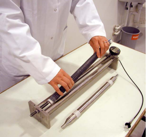 波纹管法自收缩是指在水泥基材料成型过程中,将待测样品封装到带波纹管的管子中,管子两端用塞子做好密封,保证样品在凝结硬化过程中与外界隔绝湿交换,待测样品早期的化学收缩、塑性收缩的组合。